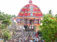 திருவாரூர் தியாகராஜசாமி கோவிலின் ஆழித்தேர் தமிழகத்தில் உள்ள கோவில் தேர்களிலேயே மிகவும் பெரியதாகும். 90 அடி உயரமும் 300 டன் எடையும் உள்ள இந்த ஆழித் தேரோட்டம் இன்று காலை 7.27 மணிக்குத் தொடங்கியது.