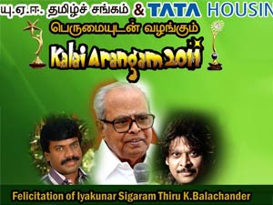 யு.ஏ.ஈ. தமிழ்ச் சங்கம் மற்றும் டாடா ஹவுசிங் ஆகியவை சேர்ந்து கலை அரங்கம் 2011 என்ற விழாவை வரும் 24ம் தேதி இரவு 7 மணிக்கு துபாயில் உள்ள துபாய் பெண்கள் கல்லூரியில் நடத்துகின்றன. இந்த விழா இயக்குனர் சிகரம் கே. பாலசந்தரை கௌரவிக்கும் பொருட்டு நடத்தப்படுகிறது.