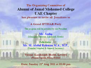 21ல் துபாயில் ஜமால் முஹம்மது கல்லூரி முன்னாள் மாணவர் சங்க இஃப்தார் நிகழ்ச்சி