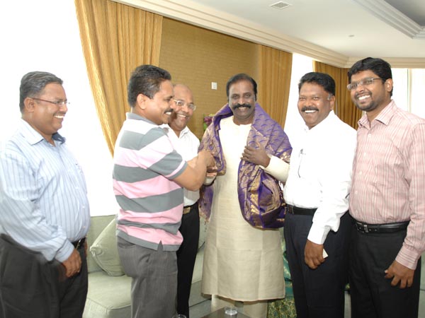 துபாய்: துபாய் வந்திருந்த கவிப்பேரரசர் வைரமுத்துவை அமீரகத்தைச் சேர்ந்த அனைத்து தமிழ் அமைப்புகளின் பிரதிநிதிகளும் சந்தித்து பொன்னாடை போர்த்தி கௌரவித்தனர்.