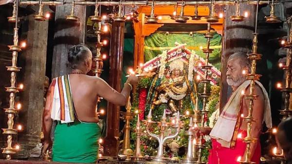 ஐப்பசி விசு: குற்றாலம் குற்றாலநாதர் கோவிலில் பச்சை சாத்தி தாண்டவ தீபாராதனை