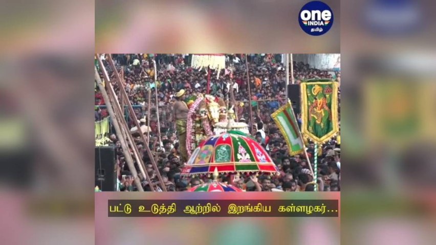 இந்த ஆண்டு பச்சைப்பட்டு உடுத்தி கள்ளழகர் வைகை ஆற்றில் இறங்கியுள்ளார்.