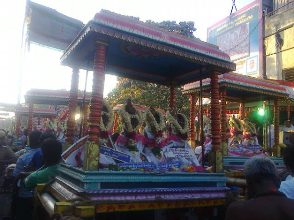 சென்னை: சென்னை மயிலாப்பூர் கபாலீஸ்வரர் கோவிலில் அறுபத்து மூவர் திருவிழா இன்று களைகட்டியுள்ளது. சென்னை மக்கள் மட்டுமல்லாது சுற்றுவட்டார ஊர்களைச் சேர்ந்த மக்களும் மயிலாப்பூர் மாடவீதிகளில் குவிந்துள்ளனர்.