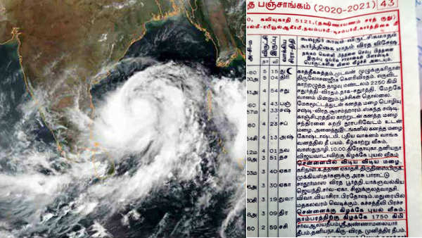 வங்கக்கடலில் புயல் உருவாகும் என்று சில நாட்களுக்கு முன்புதான் வானிலை மையம் கணித்து கூறியது. பஞ்சாங்கத்தில் கடந்த பல மாதங்களுக்கு முன்பே புயல் மழையை சரியாக கணித்திருக்கிறார்கள். நவம்பர் 24ஆம்தேதி சென்னையில் விடிய விடிய மழை பெய்யும் என்றும் நவம்பர் 28ஆம் தேதி கார்த்திகை 13ஆம் தேதி சென்னைக்கு கிழக்கே புயல் வீசும் என்றும் கணித்திருக்கிறார்கள்.