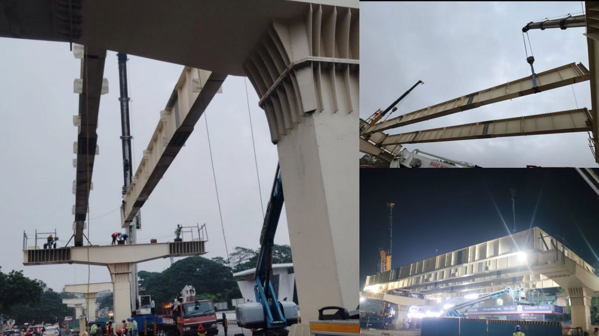 சென்னை: 3.2 கிலோமீட்டர் நீளமுள்ள தேனாம்பேட்டை - சைதாப்பேட்டை நான்கு வழி மேம்பால திட்டத்தின் முதல் இரும்பு பாலப்பகுதியை நிறுவும் பணி வெற்றிகரமாக முடிவடைந்துள்ளது.