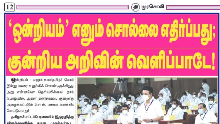 இன்றைய முரசொலியில் ஒன்றியம் தொடர்பாக எழுதப்பட்டுள்ள கட்டுரை:
