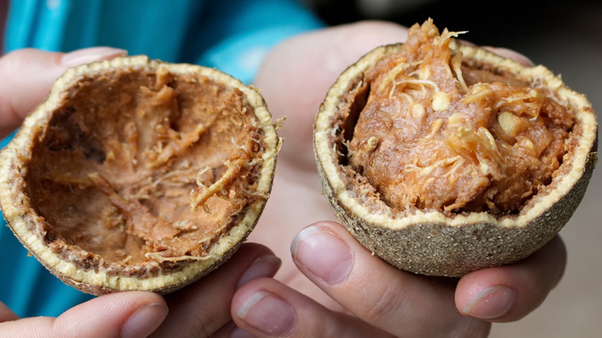 இதன் மேல் ஓடு போன்று இருக்கும். அதை உடைத்தால் அதில் ஒரு பல்ப் (pulp)இருக்கும். அந்த சதை பகுதியான பல்ப்பை எப்படி சாப்பிட வேண்டும் தெரியுமா. அதை சிறிது வெள்ளத்தை பொடித்து நன்கு கைகளால் பிசைந்தால் பஞ்சாமிர்த பதத்திற்கு வரும். அதை அப்படியே ஸ்பூனாலோ அல்லது கைகளாலோ சாப்பிட்டால் பஞ்சாமிர்தம் திடீரென தேவாமிர்தமாக மாறிவிடும்.