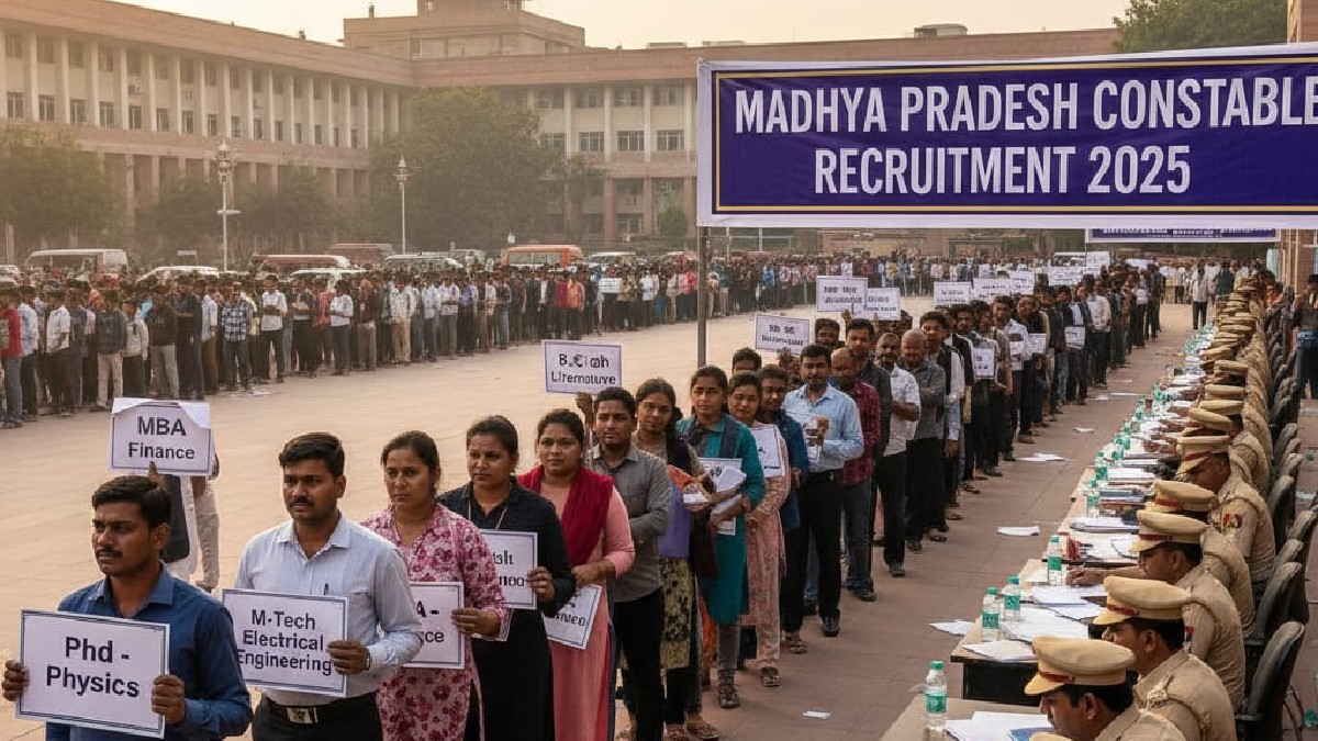இந்நிலையில் தான் மத்திய பிரதேசத்தில் வேலையில்லா திண்டாட்டம் அதிகரித்து உள்ளதை காட்டும் வகையில் ஒரு சம்பவம் நடந்துள்ளது. அதாவது மத்திய பிரதேசத்தில் காலியாக உள்ள கான்ஸ்டபிள் பணியிடங்களை நிரப்புவதற்கான அறிவிப்பு கடந்த மாதம் வெளியிடப்பட்டது. அதன்படி மாநிலம் முழுவதும் 7500 கான்ஸ்டபிள் பணியிடங்களை நிரப்ப முடிவு செய்யப்பட்டது.