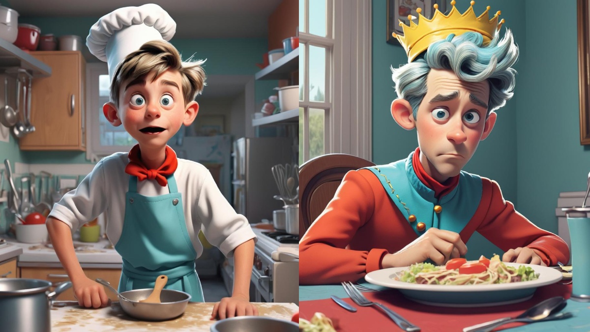 இதற்கு முடிவு கட்ட நினைத்த இளவரசன் சமையலறை எப்போதுமே பரபரப்பாக இருக்கிறது. அதனால் அங்கு செல்லலாம் என முடிவு செய்தான். ஆனால் இந்த முறை இளவரசனாக அல்லாமல் சமையலறையில் எடுபுடி வேலை செய்யும் பையனை போல மாறு வேடம் போட்டு சென்றான்.