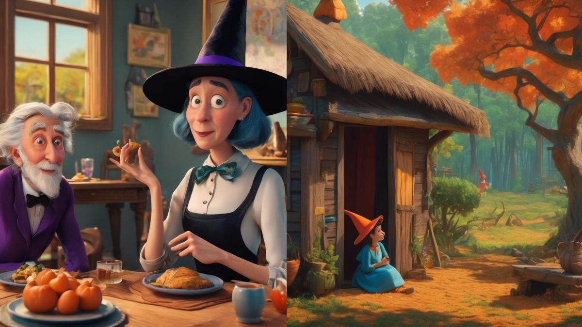 மரத்தில் ஏறி குதித்து, புத்தகத்தை எடுத்து பாக்கெட்டில் வைத்தான். அருகில் இருந்த பூஜாடியை கவனிக்காமல் இடறி விழுந்தான். அவ்வளவுதான் சூனியக்காரி விழித்தெழுந்தாள். அவனை தனது பெரிய கைகளால் பிடித்து ஆக உன்னை அப்படியே என் வாயில் போட்டு முழுங்கினால் ருசியாக இருக்கும் என்றாள். ச்சா ச்சா, அப்பெடியெல்லாம் இருக்க மாட்டேன். என் மேல் ஒரே வியர்வை நாற்றம் நான் பல நாட்கள் நடந்து இங்கு வந்து மாட்டி கொண்டேன், நீ என்னை குளிக்க வைத்து பிறகு உண் என்றான் ரேயான்.
