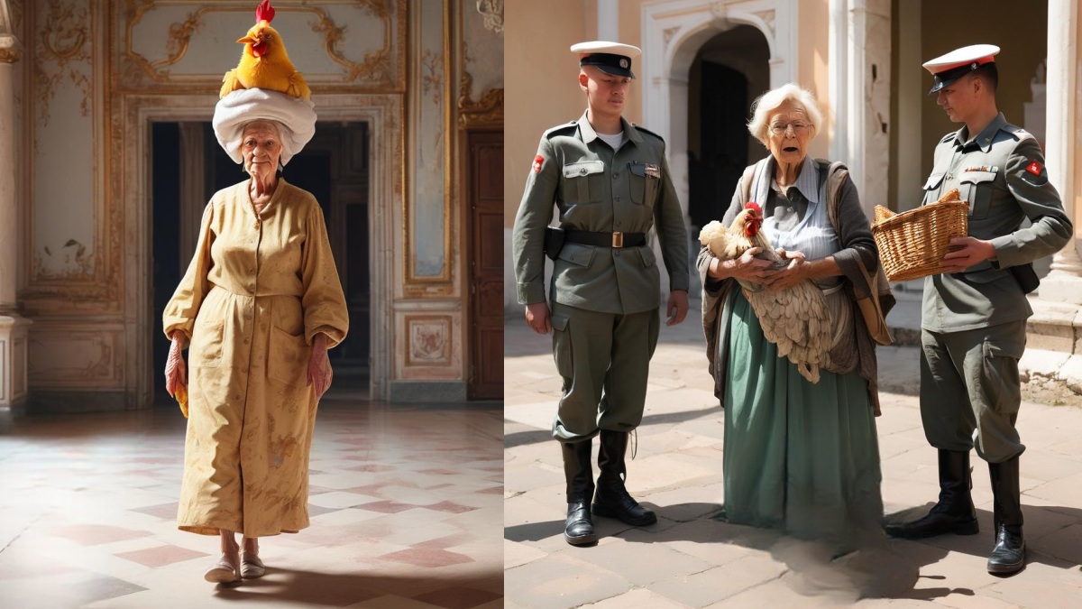 இளவரசியை காண செல்லும் முன் அந்த கோழியை தூக்கி தனது தலையில் வைத்தார். இளவரசியிடம் பேச்சு கொடுக்க ஆரம்பித்தார் அந்த பெண்மணி. அவர் கேட்ட எந்த கேள்விக்கும் இளவரசி வாயை திறக்கவில்லை. ஆனாலும் விடாத அந்த பெண்மணி இளவரசியின் முன்னால் அங்கும் இங்கும் நடந்தார். இளவரசியோ அந்த கோழியையே வெறிக்க பார்த்தார்.
