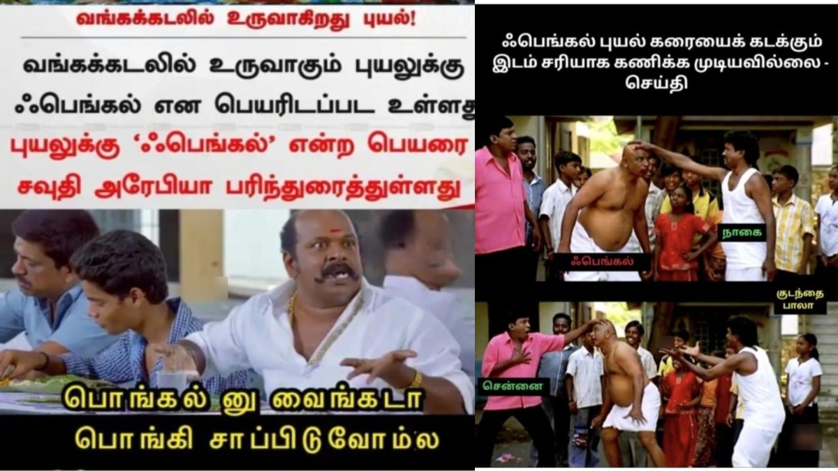 சென்னை : பெங்கல் புயலையும் தங்கள் ஸ்டைலில் பொங்கல், பெண்கள் என மீம்ஸ் போட்டுக் கலாய்த்து வருகின்றனர் நம் நெட்டிசன்கள்.