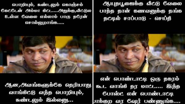 'பொரி, சுண்டலுக்கு ஆசைப்பட்டு இவ்வளவு வேலை செய்ய வேண்டி இருக்கிறதே..' என தங்களது மைண்ட்வாய்ஸ்களை சற்று சத்தமாகவே மீம்ஸ் போட்டு சமூகவலைதளங்களில் பகிர்ந்து வருகின்றனர் நெட்டிசன்கள்.