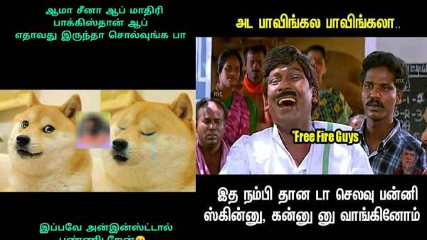 சீன ஆப்களுக்கு தடை விதிக்கப்பட்டிருப்பது பற்றிய ஜாலி மீம்ஸ்களின் தொகுப்பு.