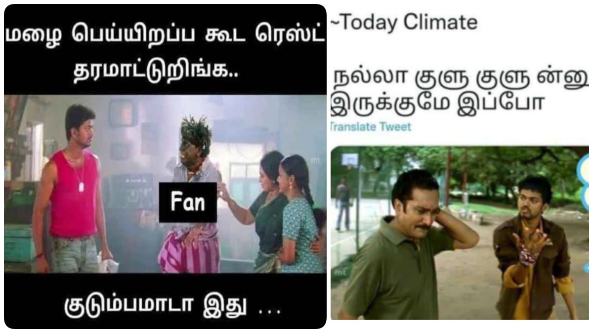 சென்னை: மழையால் குளிர்ந்து கிடக்கும் சென்னையை வைத்து நகைச்சுவையான மீம்ஸ்களைப் பகிர்ந்து வருகின்றனர் நெட்டிசன்கள்.