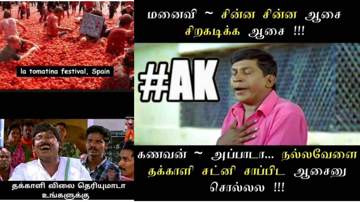 இதோ அப்படியாக சமூகவலைதளங்களில் நம் கண்ணில் பட்ட நகைச்சுவையான தக்காளி மீம்ஸ்களின் தொகுப்பு உங்களுக்காக...