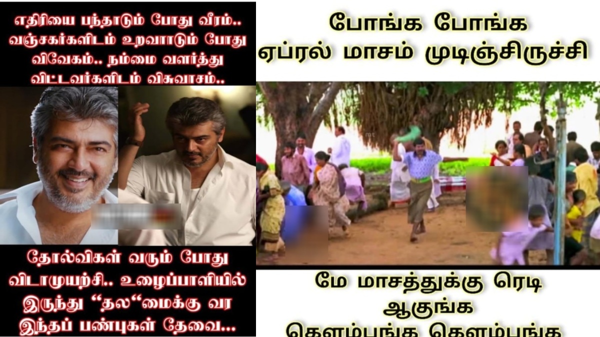 சென்னை : மே முதல் நாளான இன்று உழைப்பாளர் தினம், நடிகர் அஜித்தின் பிறந்தநாள் என விதவிதமாக மீம்ஸ்களைப் பகிர்ந்து வருகின்றனர் நெட்டிசன்கள்.