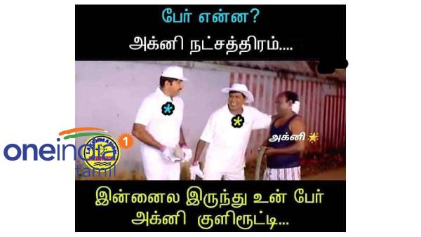 அக்னி நட்சத்திர வெயிலையே காமெடி பீஸாக்கி விட்டது இந்த கோடை மழை. இதை நினைத்து அக்னி நட்சத்திரம் ரொம்பவே வருத்தப்படுவது மாதிரி மீம்ஸ்கள் இணையத்தை தெறிக்க விட்டு வருகின்றன. 'இனிமேல் உன் பெயர் அக்னி நட்சத்திரம் இல்லை... அக்னி குளிரூட்டி' என பெயரையே மாற்றும் அளவிற்கு போய் விட்டனர் நெட்டிசன்கள்.