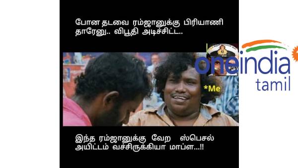ரம்ஜான் பண்டிகை வாழ்த்துக்களோடு பிரியாணி பற்றிய ஜாலி மீம்ஸ்கள் அதிகம் பகிரப்பட்டு வருகின்றன.