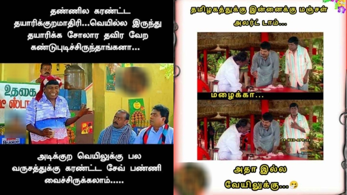 இதோ அப்படியாக சமூகவலைதளப் பக்கங்களில் நம் கண்ணில் பட்ட நகைச்சுவையான சில வெயில் மீம்ஸ்களின் தொகுப்பு உங்களுக்காக...