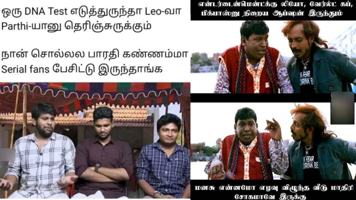 சென்னை: தியேட்டர்களில் வசூல் மழை பொழிந்து வரும் லியோ பட வெற்றியை மீம்ஸ் போட்டு கொண்டாடி வருகின்றனர் நெட்டிசன்கள்.
