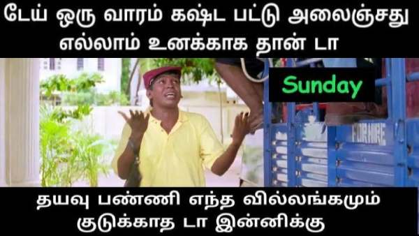 ஞாயிற்றுக்கிழமை விடுமுறை மற்றும் சாப்பாடு பற்றிய ஜாலி மீம்ஸ்களின் தொகுப்பு.