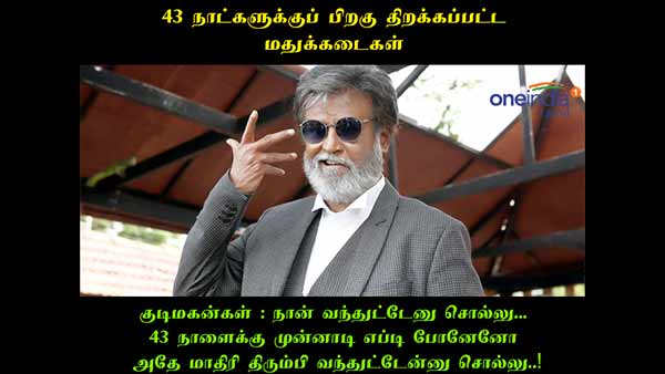 டாஸ்மாக் கடைகள் திறக்கப்பட்டது பற்றிய ஜாலி மீம்ஸ்கள்.