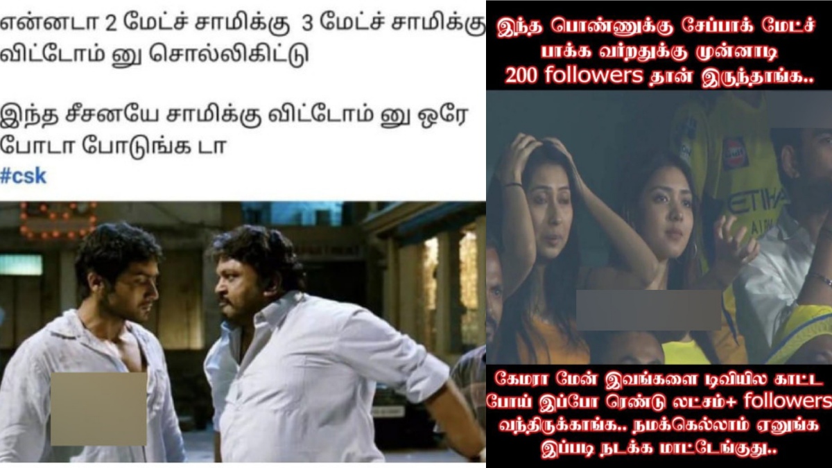 "ஐபிஎல் பார்த்தா டிப்ரசன் போகுமா.. டேய் எனக்கெல்லாம் டிப்ரசன் வந்ததே ஐபிஎல்ல பார்த்துத்தான்டா!" என்றும், "என்னடா 2 மேட்ச், 3 மேட்ச்னு அசிங்கமா சொல்லிக்கிட்டு.. மொத்தமா சாமிக்கு விட்டுட்டோம்னு சொல்லுங்கடா!" என்றும் விதவிதமாக சிஎஸ்கேவைக் கலாய்த்து வருகின்றனர்.