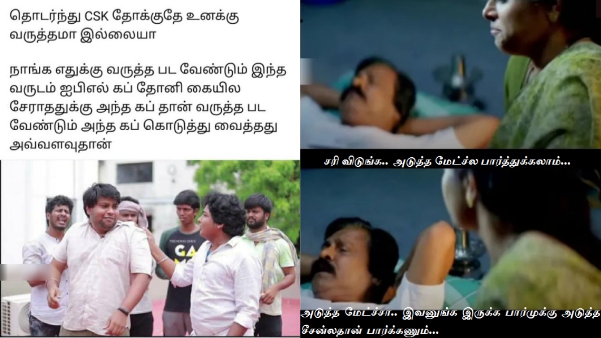 ஐபிஎல் ஆரம்பித்ததில் இருந்தே சமூகவலைதளப் பக்கங்களில் எப்போதுமே கிரிக்கெட் மீம்ஸ்களின் ஆதிக்கம்தான். அதுவும் இந்த வருடம் வழக்கத்திற்கு மாறாக ஆர்சிபி தொடர்ந்து நன்றாக விளையாடி, பட்டியலில் முன்னிலையிலும், அதற்கு நேர் எதிராக சிஎஸ்கே தொடர்ந்து ஆட்டங்களில் சொதப்பி, பட்டியலில் கடைசி இடத்திலும் உள்ளது.