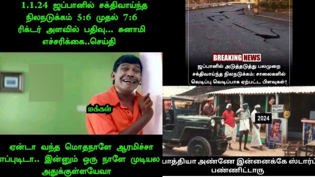 சென்னை: புத்தாண்டு தினமான நேற்றே, ஜப்பானில் நிலநடுக்கம், அதனைத் தொடர்ந்து சுனாமி எச்சரிக்கை என அடுத்தடுத்து வெளியான செய்திகளை வைத்து, 'இப்போவே ஆரம்பிச்சிட்டியா?' என 2024ம் ஆண்டை மீம்ஸ் போட்டு திட்டத் தொடங்கி விட்டனர் நெட்டிசன்கள்.