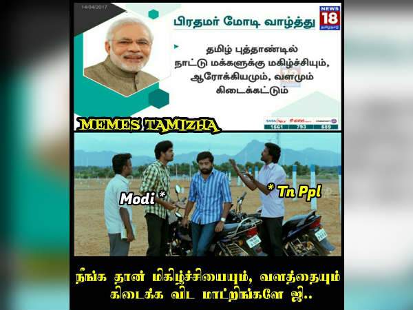 பிரதமர் மோடி தமிழ்மக்களுக்கு புத்தாண்டு வாழ்த்து தெரிவித்திருப்பதை வச்சு நெட்டிசன்கள் வச்சு செய்துள்ளனர்.