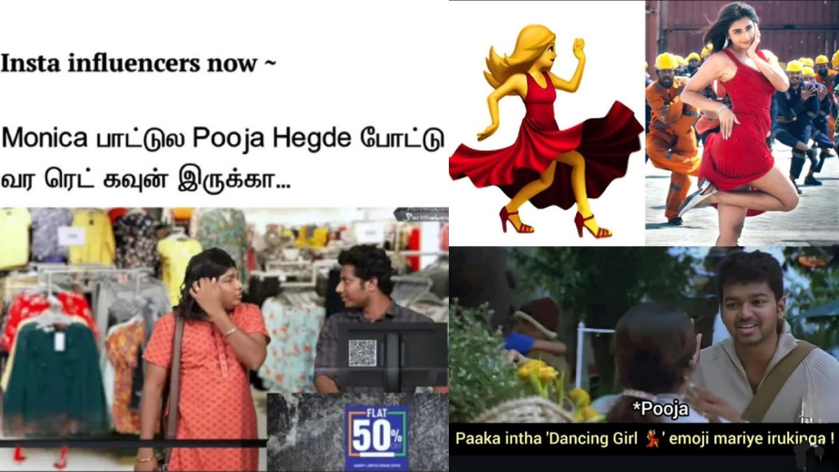 பாடல் வெளியானவுடன் ட்விட்டர், இன்ஸ்டாகிராம், பேஸ்புக் ஆகிய அனைத்திலும் மீம்ஸ் மழை பெய்து வருகிறது. இன்ஸ்டாவில் ரீல்ஸ் போடும் இன்ஃப்ளுயன்சர்களையே பல ரசிகர்கள் மீம்ஸ்களால் கலாய்த்து வருகின்றனர். பூஜாவின் நடனம் அருமையாக இருந்தாலும், சௌபின் தான் இந்த பாடலின் ஷோ ஸ்டீலர் என்று பலர் ட்விட்டரில் பதிவிட்டு வருகின்றனர். அதில் சில மீம்ஸ்கள் உங்களுக்காக..