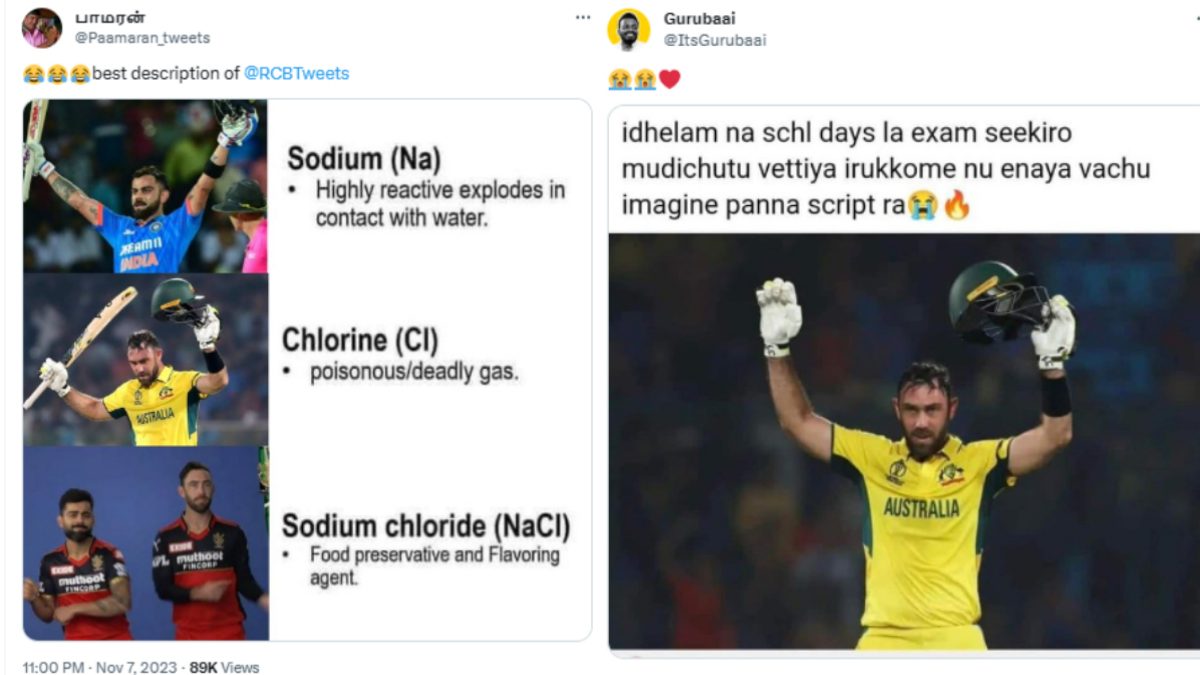 இதை எல்லாம் வைத்துதான்.. ஆஸ்திரேலிய வீரர் மேக்ஸ்வெல் ஆடிய விதத்தை வைத்து நெட்டிசன்கள் பலரும் மீம்ஸ் போட்டு வருகின்றனர். முக்கியமாக ஆர்சிபி அணியில் இருந்து கொண்டு அவர் ஆடிய விதம்.. ஆர்சிபி அணியில் பல முறை சொதப்பிவிட்டு.. ஆஸ்திரேலியா அணியை வெற்றிபெற வைத்ததை எல்லாம் குறிப்பிட்டு மீம்ஸ் போட்டு வருகின்றனர்.