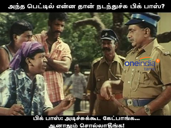 இப்படியாக பிக் பாஸ் வீட்டில் நடந்த சில சுவாரஸ்யமான சம்பவங்களை வைத்து உருவாக்கப்பட்ட சில ஜாலி மீம்ஸ்கள் உங்களுக்காக...