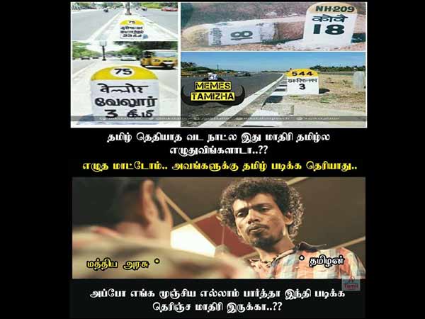தமிழ் தெரியாத வட நாட்டுல இது மாதிரி தமிழ்ல எழுதுவிங்களா? எழுத மாட்டோம் அவங்களுக்கு தமிழ் படிக்க தெரியாது... அப்போ எங்க மூஞ்சிய எல்லாம் பார்த்தா இந்தி படிக்க தெரிஞ்சா மாதிரி இருக்கா?