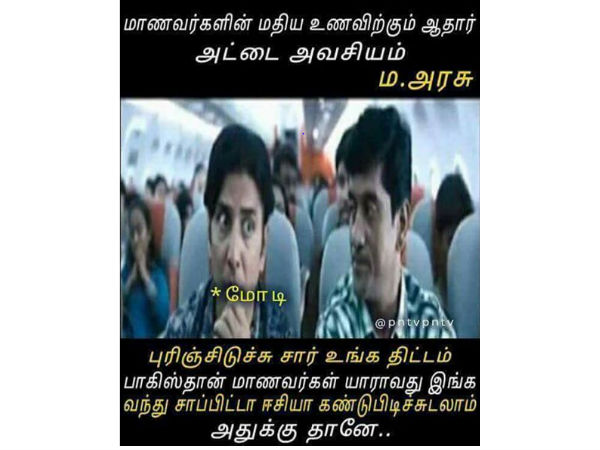 இதுக்கும் ஆதார் கார்டு கேப்பாங்களோன்னு கலாய்க்கிறது இந்த மீம்ஸ்...