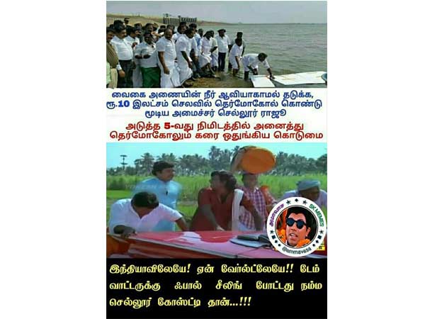 இந்தியாவிலேயே! ஏன் வேர்ல்ட்லேயே!! வாட்டருக்கு ஃபால் சீலிங் போட்டது நம்ம செல்லூர் கோஷ்டி தான்!!