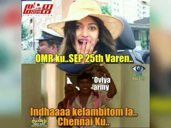 அவரை காண ரசிகர்கள் ஆவலாக உள்ள நிலையில் தற்போது ஓஎம்ஆர் சாலையில் பிரபல துணிக்கடை விளம்பரத்தில் அவர் தோன்றுகிறார். அதுமட்டுமல்லாமல் செப். 25-இல் கடைத்திறப்பு விழாவின்போது ஓவியாவும் ஷாப்பிங் செய்ய வருவதாக விளம்பரம் செய்கிறார். இதுகுறித்து மீம்ஸ்கள் குவிந்துள்ளன.