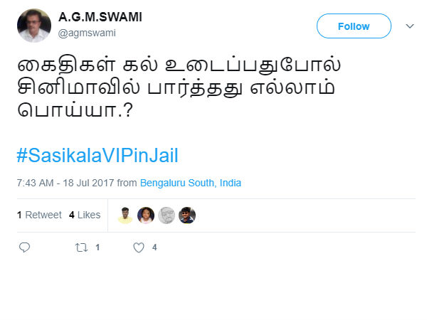 இந்தியாவில் உள்ள ஜெயலில் அடைக்கப்பட்டால் ஷாப்பிங் செல்லலாம், எல்இடி டிவி, ஏசி, கிச்சன் ஆகியவை கிடைக்கும் என்கிறது இந்த டுவீட்.