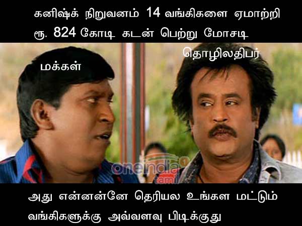 இந்த நிறுவனமும் சுமார் ரூ. 1000 கோடி அளவிற்கு மோசடி செய்துள்ளதாக கூறப்படுகிறது. வங்கிகளின் செயலைப் பார்த்து வயிற்று எரிச்சல் தான் வருகிறது. சரி ரிலாக்ஸாக இந்த மீம்ஸ்கள் சிலவற்றை பார்க்கலாம்.