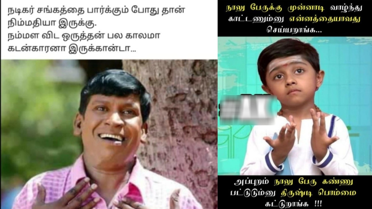 இப்போதும் அப்படித்தான், "நடிகர்சங்கத்தை பார்க்கும்போது நிம்மதியா இருக்கு.. நம்மளவிட ஒருத்தன் பல காலமா கடன்காரனா இருக்கான்டா!" என்றும், ""ஒரு வாசல் மூடி மறுவாசல் வைப்பார்".. எனக்கு வைக்கல மச்சான்.. உனக்காவது வச்சாரா?" என்றும் விதவிதமான மீம்ஸ்களைப் பகிர்ந்து வருகின்றனர்.
