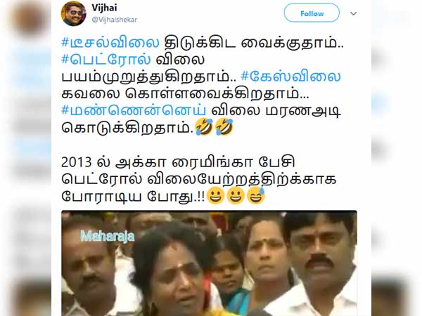டீசல் விலை திடுக்கிட வைக்குது.. பெட்ரோல் விலை பயமுறுத்துகிறது.. இது நம்ம அக்கா 2013ல பேசினதுதான்!