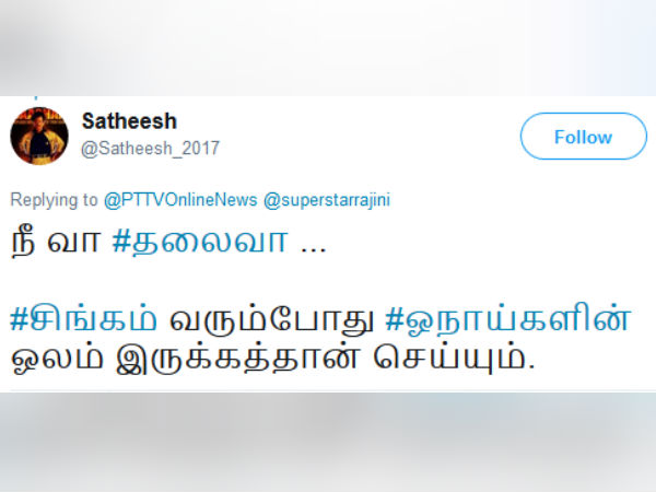 நீ வா தலைவா ... சிங்கம் வரும்போது ஓநாய்களின் ஓலம் இருக்கத்தான் செய்யும்... என்கிறார் இந்த நெட்டிசன்