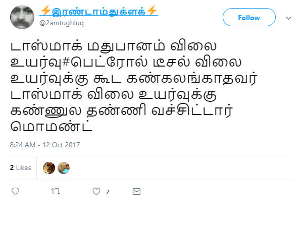 ஊதிய உயர்வு டாஸ்மாக் விலை உயர்வு தட்ஸ் ஆல்... என்கிறார் இந்த நெட்டிசன்..