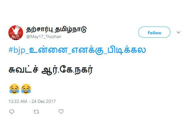 சுவட்ச் ஆர்.கே.நகர்... என்கிறது இந்த டிவிட்...