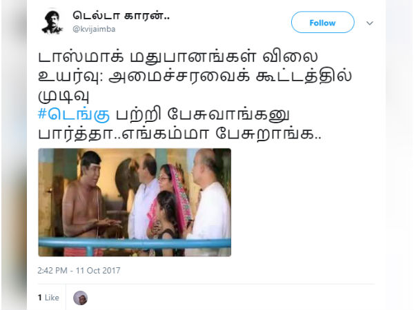 டெங்கு பற்றி பேசுவாங்கனு பார்த்தா.. எங்கம்மா பேசுறாங்க.. #டாஸ்மாக் விலை உயர்வு