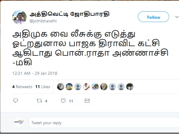 இதைத்தொடர்ந்து பாஜகவும் திராவிடக்கட்சிதான் என மத்திய இணையமைச்சர் பொன் ராதாகிருஷ்ணன் தெரிவித்தார். இதற்கு சமூக வலைதளங்களில் நெட்டிசன்கள் பலரும் தங்களின் கருத்துக்களை பகிர்ந்து வருகின்றனர்.