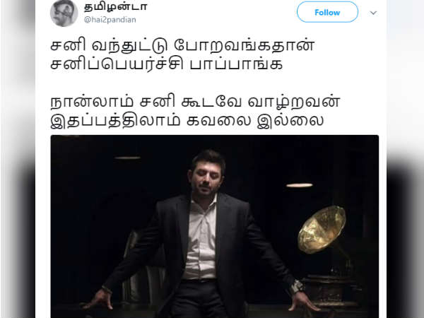 நான்லாம் சனி கூடவே வாழ்றவன் இதப்பத்திலாம் கவலை இல்லை.. என்கிறது இந்த டிவிட்
