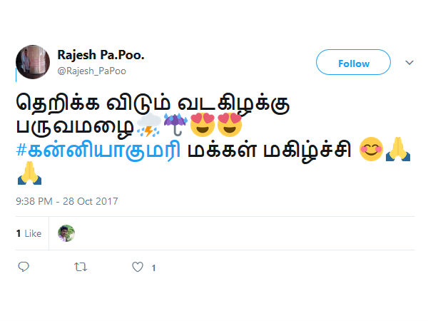 தெறிக்க விடும் வடகிழக்கு பருவமழை.. #கன்னியாகுமரி மக்கள் மகிழ்ச்சி.. என்கிறது இந்த டிவிட்