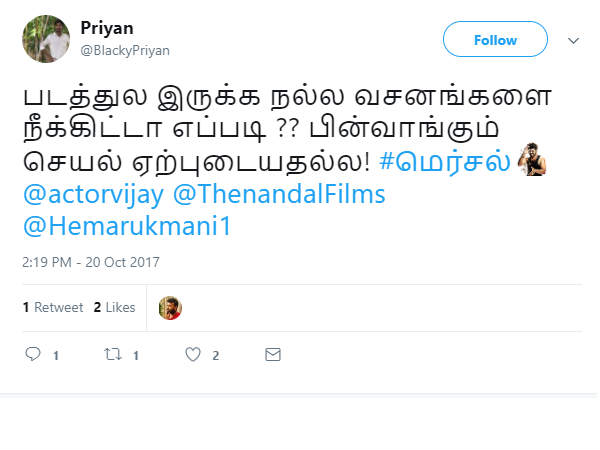 படத்துல இருக்க நல்ல வசனங்களை நீக்கிட்டா எப்படி ?? பின்வாங்கும் செயல் ஏற்புடையதல்ல! என கூறுகிறார் இந்த வலைஞர்
